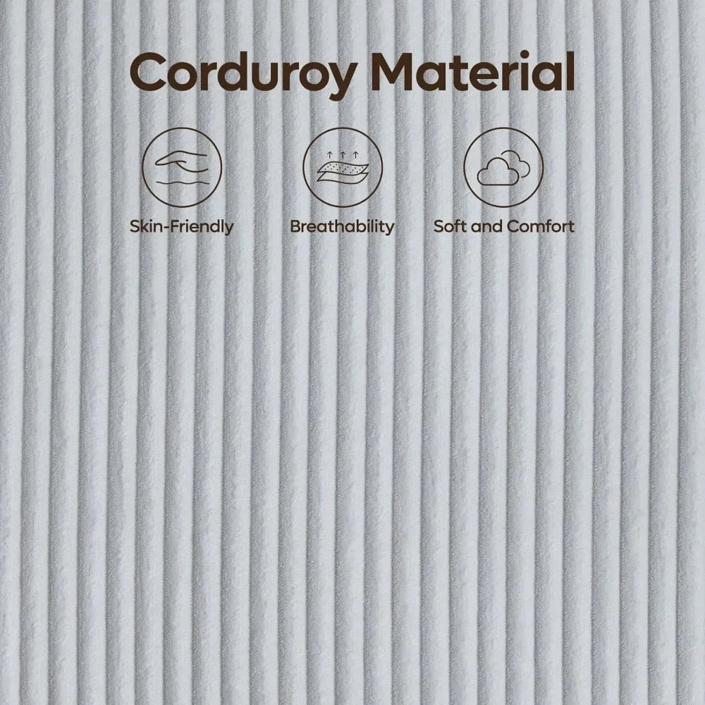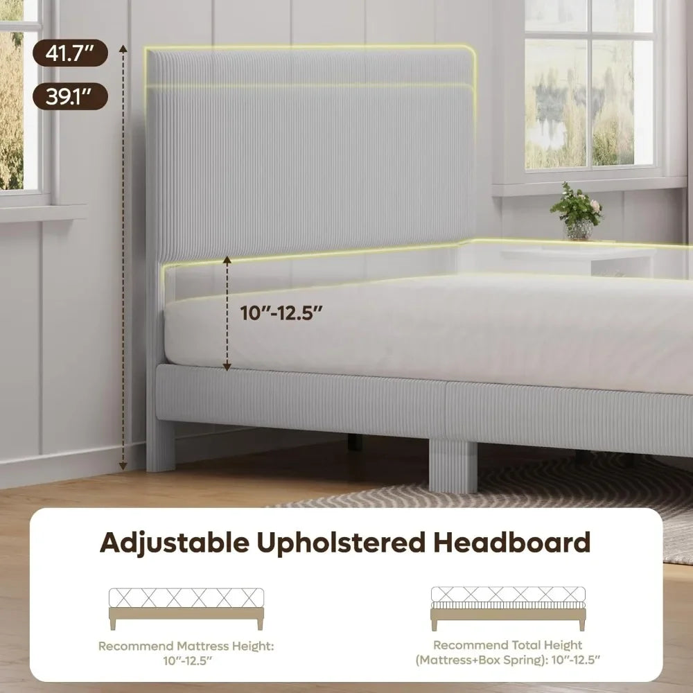 Special Feature: Adjustable Headboard, Corduroy Vertical Channel Tufted, LED Lighting