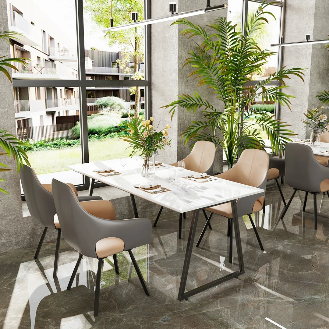 The epitome of contemporary elegance, these dining chairs serve as both practical seating and a striking statement piece. The microfiber silicone leather construction offers luxurious texture while the upholstered cushion and supportive armrest/backrest ensure optimal sitting posture. Their versatile design transcends mere functionality, effortlessly elevating the visual appeal of modern dining areas.
