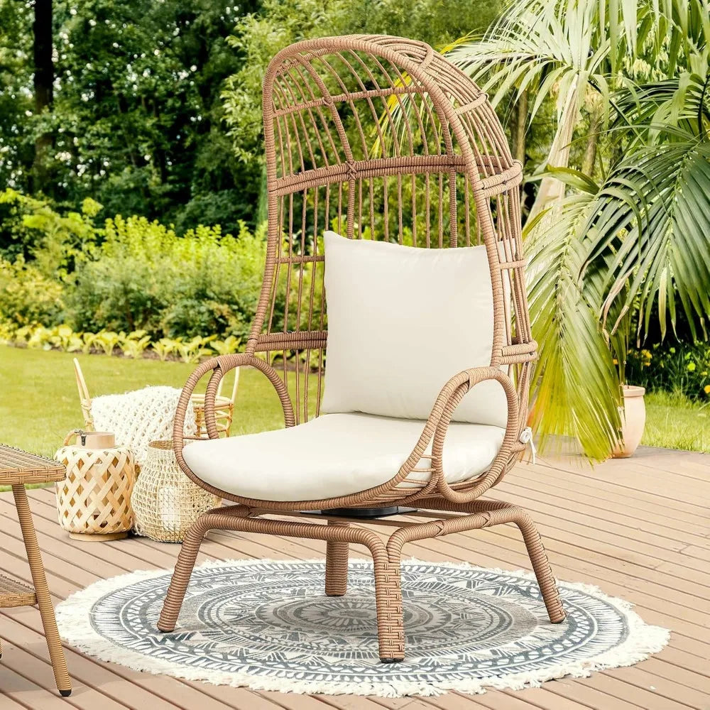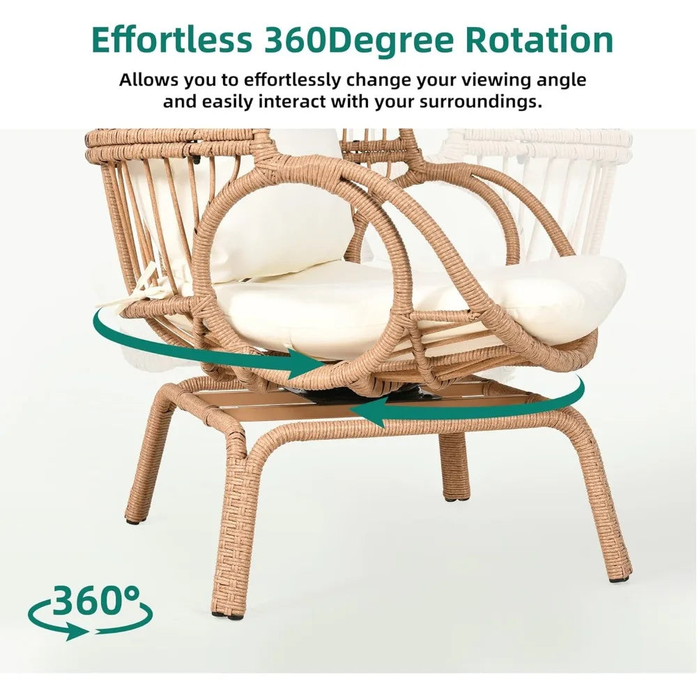 - Crafted with Care: Imagine a chair so comfy and tough, it can handle anything you throw at it. We built this rotating egg chair with indestructible wicker, so it'll last for ages, indoors or outdoors. Rain or shine, this chair won't budge