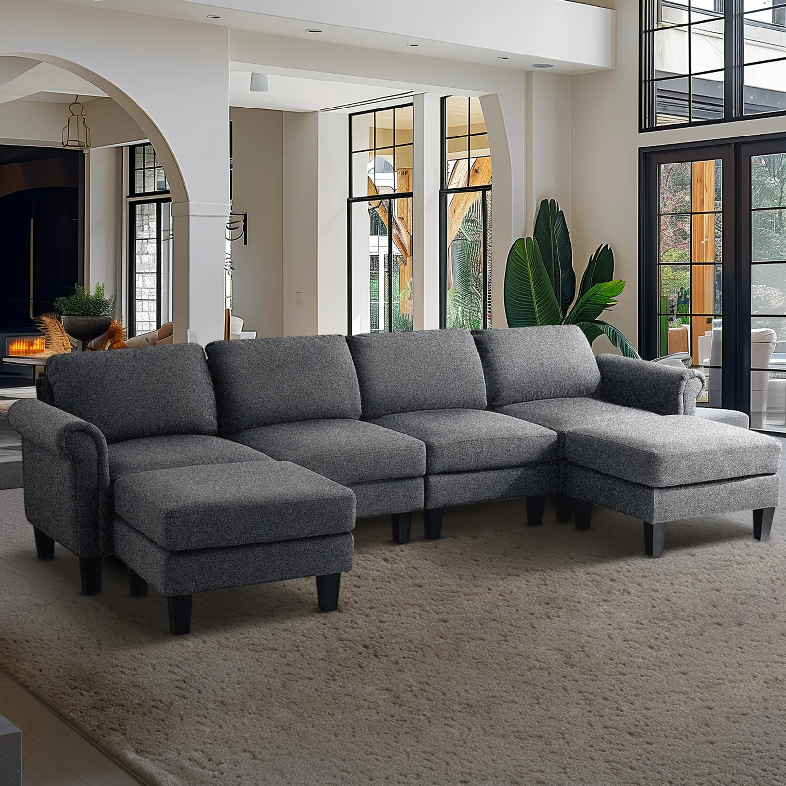Versatile Design to Fit Any Space: Our 4+2 sectional sofa is designed with flexibility in mind, allowing you to arrange the sofa in a variety of configurations to fit your living room layout. Whether you prefer a cozy L-shape or an open U-shape, this sectional sofa offers endless possibilities for creating the perfect seating area.