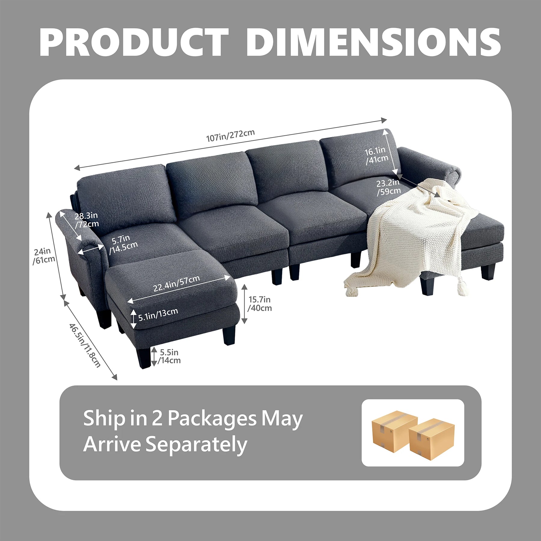 Stylish and Timeless Design: Crafted with a modern yet timeless aesthetic, this sectional sofa complements a variety of decor styles. Its clean lines and neutral tones make it easy to integrate into any living space, while the high-quality materials and construction ensure it will stand the test of time.
