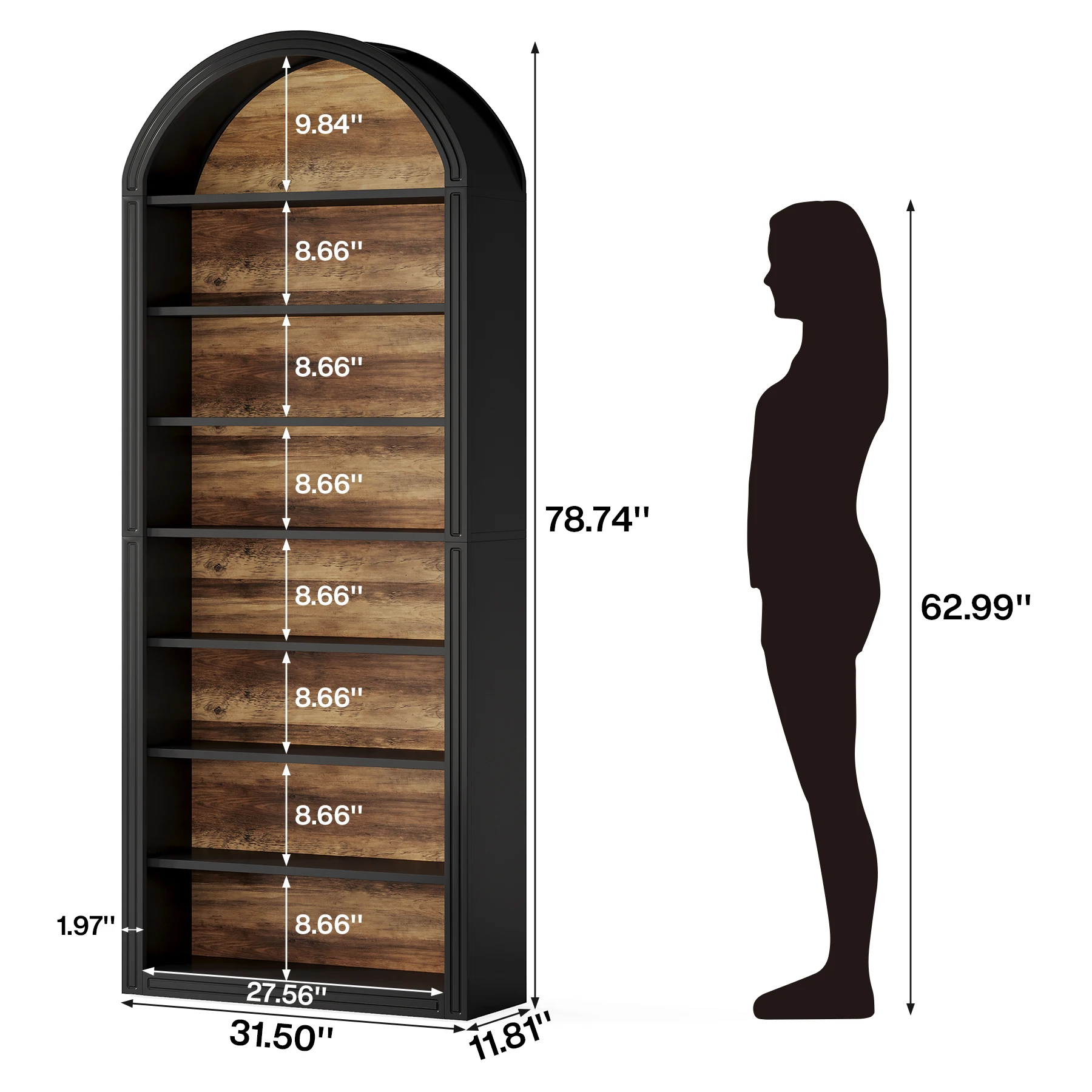 Tribesigns 78.7" Tall Bookshelf, Modern White Arched Bookcase with Storage Shelves, 8-Tier Floor Standing